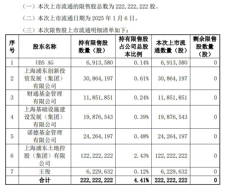 本次股票上市类型为非公开辟行股份;股票认购体例为网下,上市股数为222,222,222股。本次股票上市畅通总数为222,222,222股。上市畅通日期为2025年1月6日。