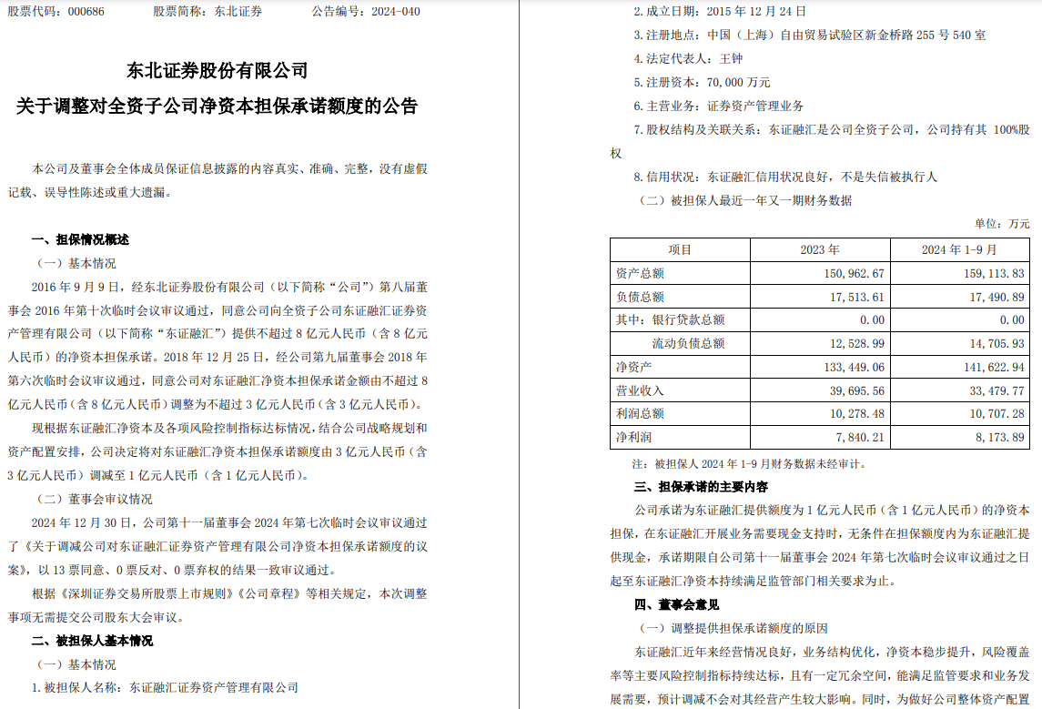 东北证券第十一届董事会2024年第七次姑且会议于2024年12月30日以通信表决的体例召开。审议通过《关于调减公司对东证融汇证券资产办理无限公司净本钱许诺额度的议案》《关于修订东北证券股份无限公司洗钱风险办理轨制的议案》《公司2024年度内部节制评价工做方案》。